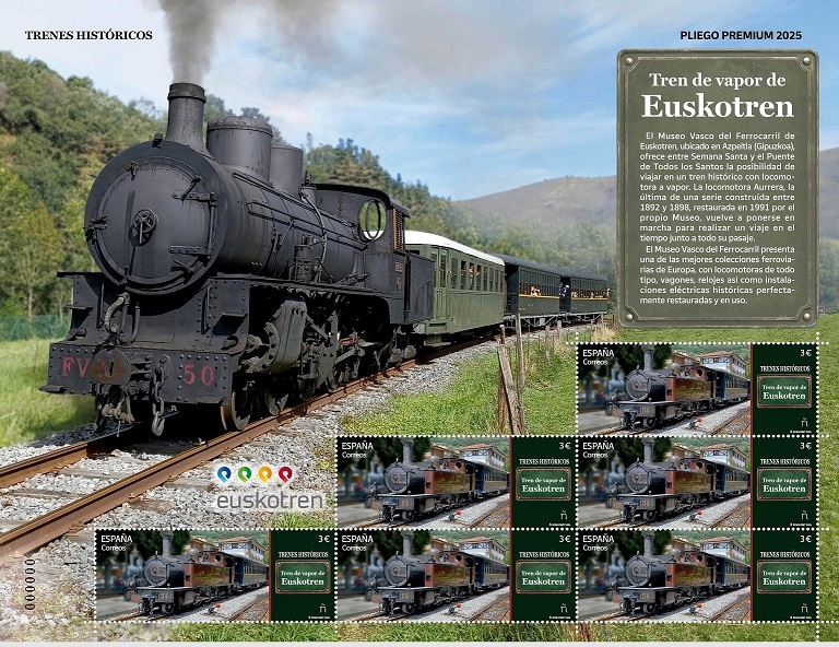 La emisión filatélica conmemora la labor del Museo Vasco del Ferrocarril de Euskotren, cuya colección se considera una de las más importantes de Europa en material ferroviario, que abarca locomotoras, vagones, tranvías y trolebuses.