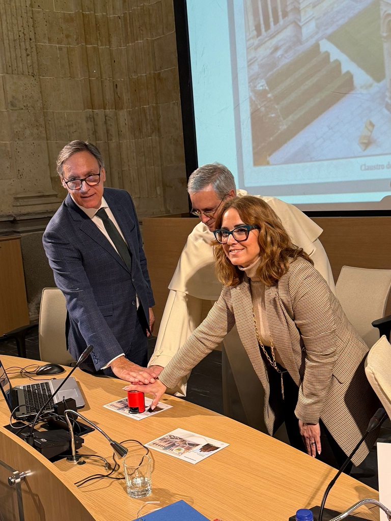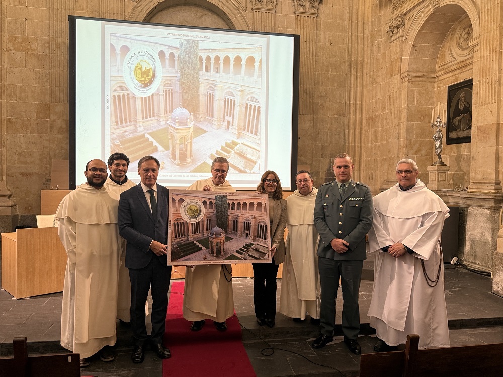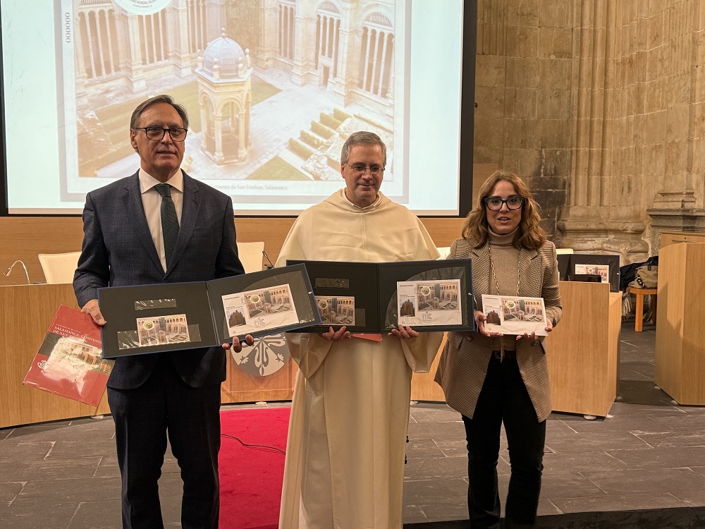 El sello ha sido presentado esta mañana en el Convento de San Esteban por su Prior, Manuel Ángel Martínez Juan, el alcalde de Salamanca, Carlos García Carbayo y por la directora de Filatelia y Relaciones Institucionales de Correos, Nuria Lera Hervás.