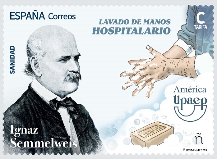 Madrid, 21 de octubre de 2025.– Correos ha presentado un sello dedicado a la práctica del lavado de manos en el ámbito hospitalario, implantada de forma pionera por el cirujano y obstreta húngaro Ignaz Semmelweis. Esta emisión forma parte de la serie ‘América UPAEP’, que desde 1989 reúne a los países miembros de la Unión Postal de las Américas, España y Portugal en torno a una temática común. En esta edición, el tema elegido ha sido la sanidad.