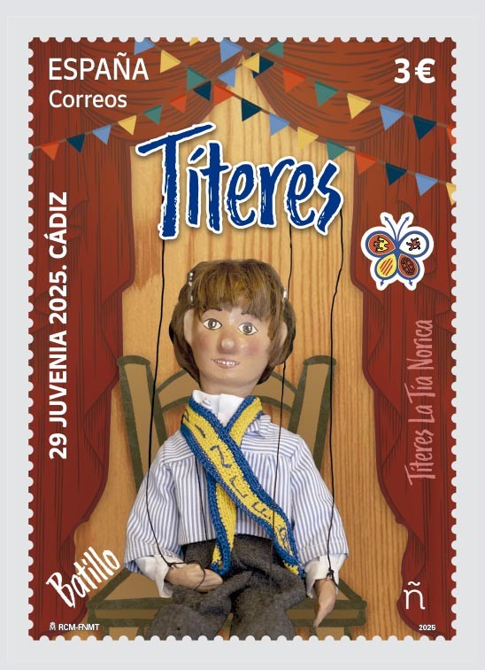 • Durante una jornada dedicada a Cádiz se han presentado los sellos conmemorativos correspondientes a la edición 2025 de EXFILNA y JUVENIA, dedicados respectivamente al Ayuntamiento de Cádiz y a La Tía Norica, la histórica compañía gaditana de títeres • El acto, celebrado en el propio Ayuntamiento con el tradicional matasellado de honor, contó con la intervención de la teniente de alcalde y concejala de Cultura, Maite González García-Negrotto; el presidente de FESOFI, José Antonio Arruego Sanz; y la directora de Filatelia y Relaciones Institucionales de Correos, Nuria Lera Hervás • Con el Baluarte de la Candelaria como principal sede expositiva, la ciudad acoge hasta el 9 de noviembre una programación que une tradición, cultura y creatividad juvenil en torno al mundo del sello